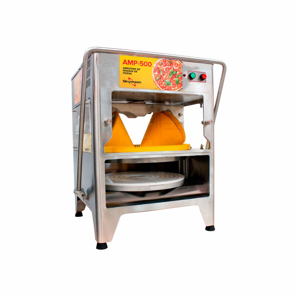 Explore a facilidade e eficiência do Abridor de Massa de Pizza Skymsen AMP 500! Com um design moderno e robusto, este equipamento é a solução definitiva para agilizar a preparação de pizzas em sua cozinha.
