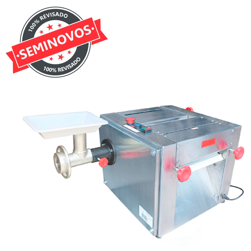 O Cilindro com Moedor e Extrusora Bigolar oferece eficiência e versatilidade no preparo de massas, biscoitos, carnes e embutidos. Possui misturador basculante com capacidade para 5 kg de farinha, sistema de segurança com desligamento automático ao abrir a tampa e extrusora com trefilas para diversos tipos de massa. Sua estrutura em inox e extrusora em ferro fundido garantem resistência, durabilidade e excelente desempenho no uso profissional.