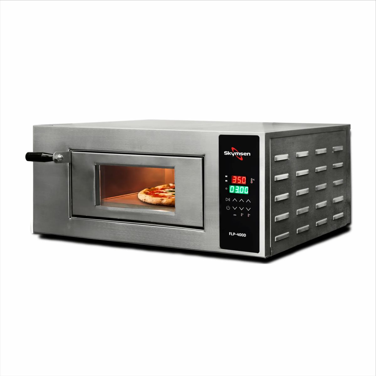 O Forno de Pizza Elétrico Skymsen FLP 400D e eleve sua produção de pizzas a um novo patamar! Com potência incrível de 3.300 W e capacidade de atingir 450°C em minutos, este forno garante assamento uniforme em apenas 2-3 minutos. Sua estrutura em aço inoxidável oferece durabilidade, enquanto as dimensões generosas permitem pizzas de até 40 cm de diâmetro. Controle de temperatura independente e painel digital intuitivo garantem resultados perfeitos, enquanto a escova de limpeza inclusa facilita a manutenção. Não perca tempo, surpreenda seus clientes com pizzas deliciosas e rápidas - escolha o Forno de Pizza Skymsen FLP 400D agora mesmo!