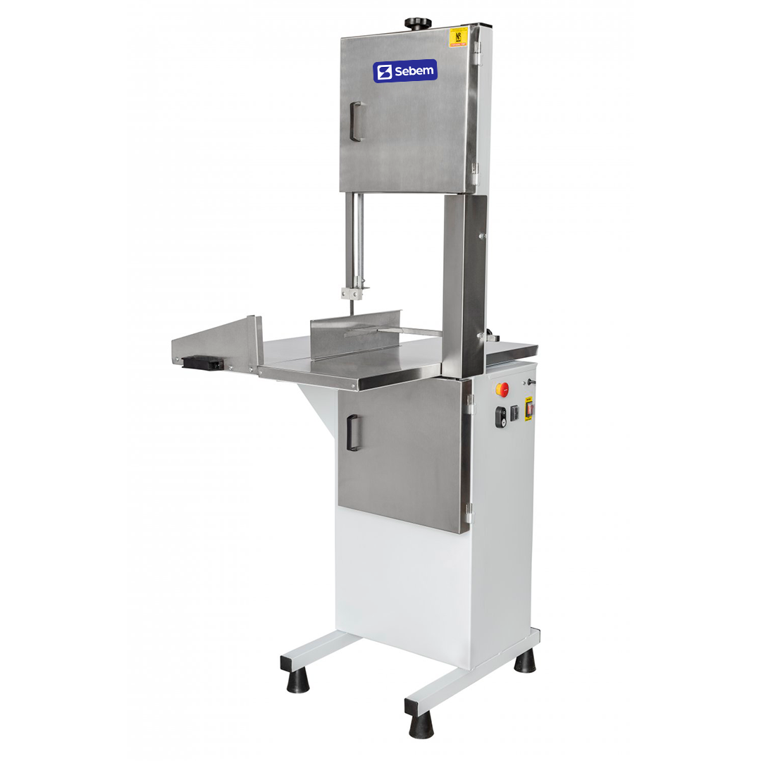 A serra fita Sebem profissional é ideal para açougues, casas de carne e frigoríficos, pois com ela é possível realizar vários cortes incluindo carnes congeladas e ossos. Seu diferencial é sua área de corte, pois conta com mesa 65x70cm e altura de corte 40cm possibilitando o manuseio e o corte de peças maiores. Sua estrutura é com pintura de alta resistência com portas e mesas em aço inox que garante maior durabilidade do equipamento, ainda mais por contar com o motor de 1cv e volantes de ferro fundido. Sua lâmina é de 2,82M sendo de fácil reposição.